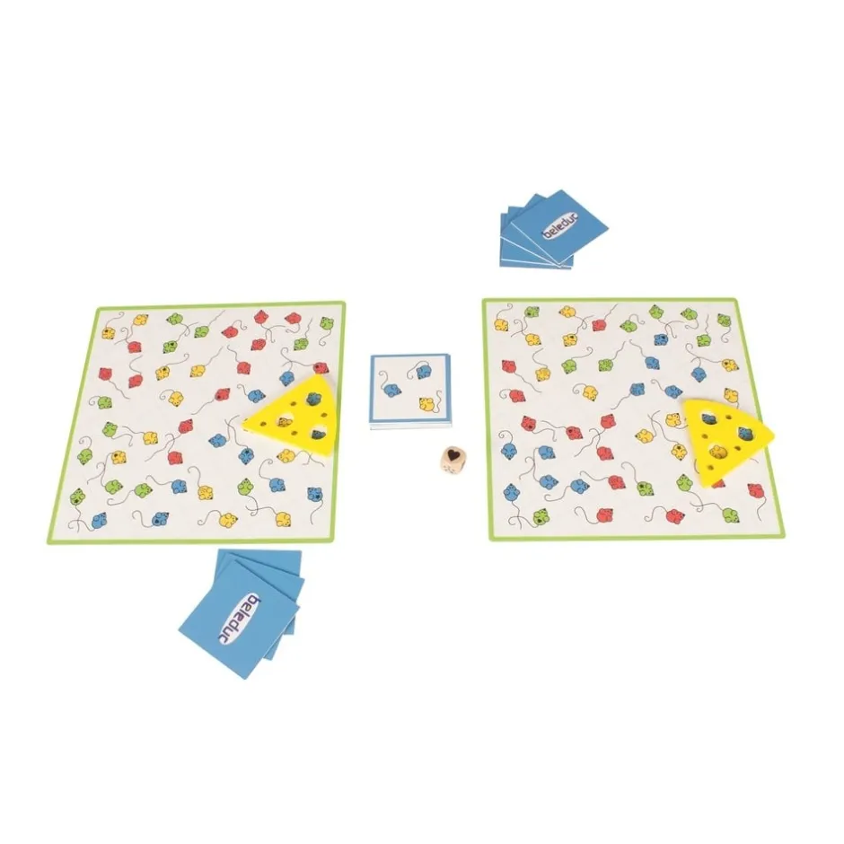 - 16 cartes fromage en carton épais illustrées par 3 souris de positionnement et couleurs variables,
