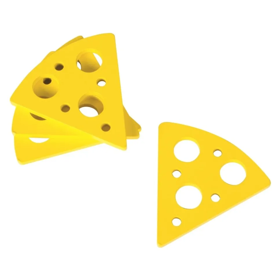 - 4 morceaux de fromage en bois jaunes perforés en 3 endroits,