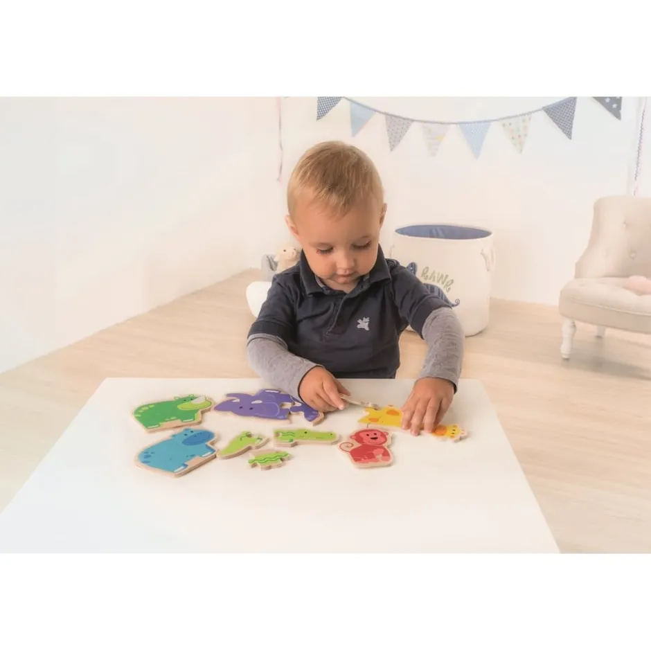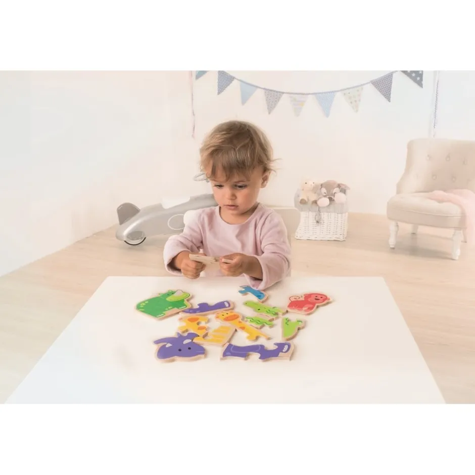 Ces six animaux de la jungle sont assez mélangés ! Lorsque les pièces du puzzle respectives sont correctement assemblées, les enfants s’entraînent à la coordination et à la reconnaissance de forme. Les couleurs des animaux sont d’une bonne aide et vous encouragent à les combiner correctement.