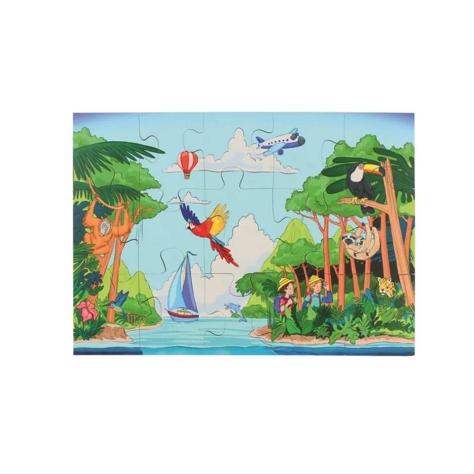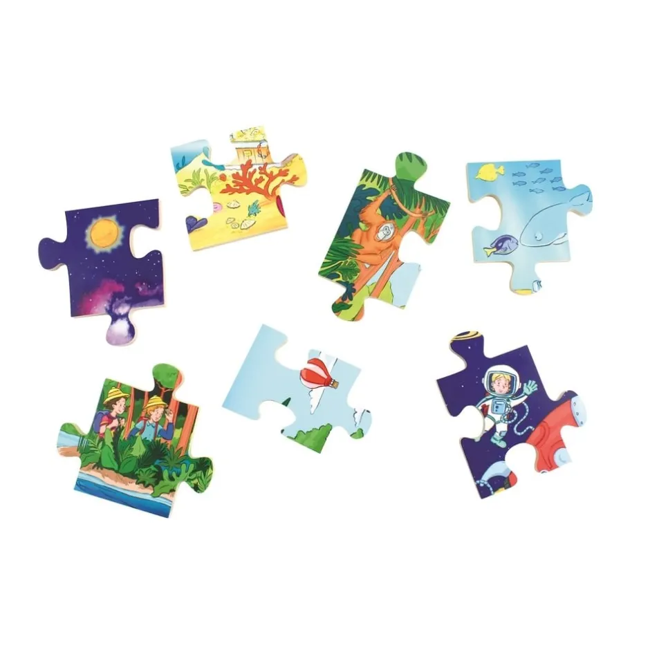 Dès 3 ans, votre bambin pourra ainsi développer sa coordination œil-main, sa motricité fine et son sens de l’observation et de la déduction en apprenant à trier les pièces selon leur forme, leurs couleurs et ce qu’elles représentent. C’est un exercice qui apprendra à votre enfant à être calme, autonome, méthodique et concentré. Avec son thème, ce puzzle en bois développera son vocabulaire pour décrire l’espace, les fonds marins ou la forêt luxuriante, et éveillera sa curiosité et son envie de comprendre le monde qui l’entoure.