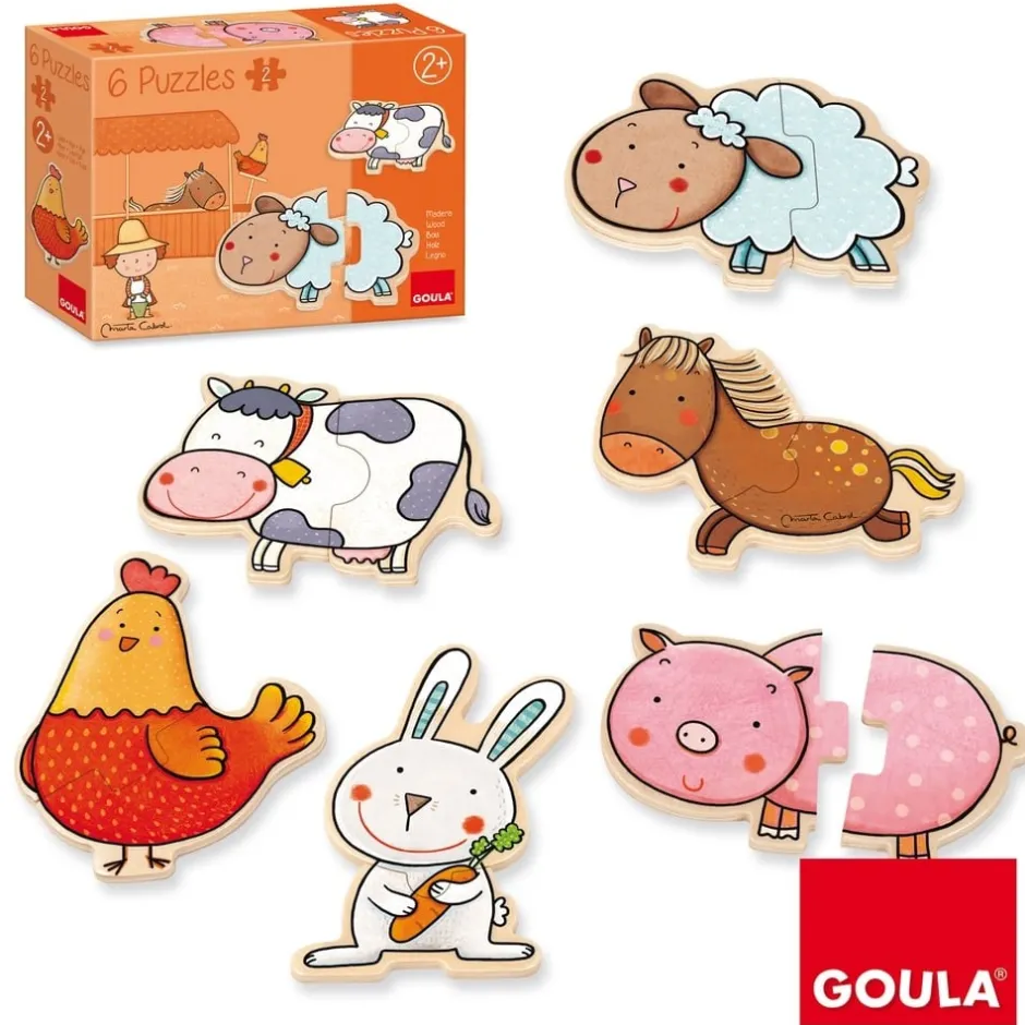 Ces 6 puzzles en bois sont chacun composés de deux pièces permettant de reconstituer un animal (le mouton, le cheval, la vache, la poule, le lapin et le cochon). Simples et faciles à prendre en main, ils permettront à votre enfant dès 2 ans de stimuler sa motricité fine, sa coordination œil-main et son sens de l’observation et de la déduction pour assembler les pièces selon leur forme, leur taille, leur couleur et leur motif. Il pourra s’occuper calmement, en autonomie et restera concentré pour résoudre ces petits puzzles tout en bois. L’univers des animaux de la ferme lui fera également apprendre de nouveaux mots de vocabulaire et lui donnera matière pour élargir son imagination et ses connaissances.