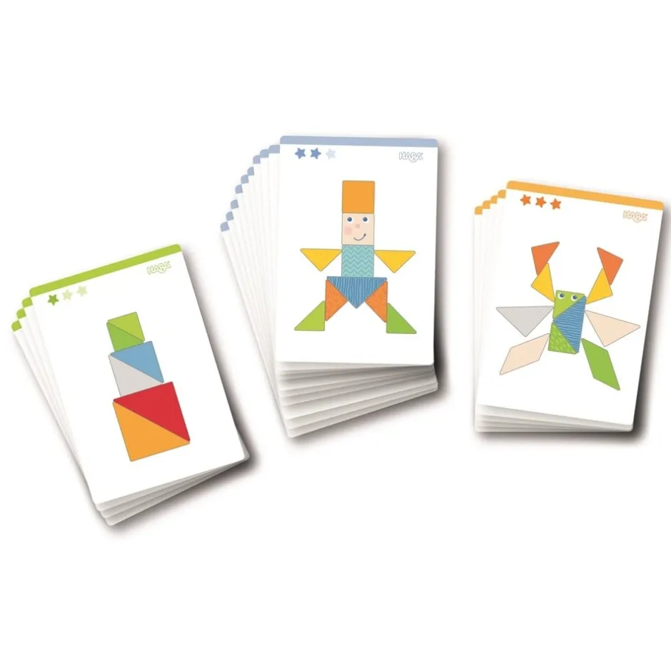 Contenu : 21 pièces en bois et 40 cartes modèles cartonnées.