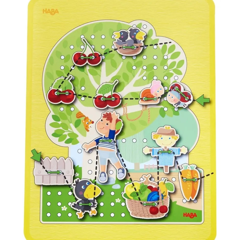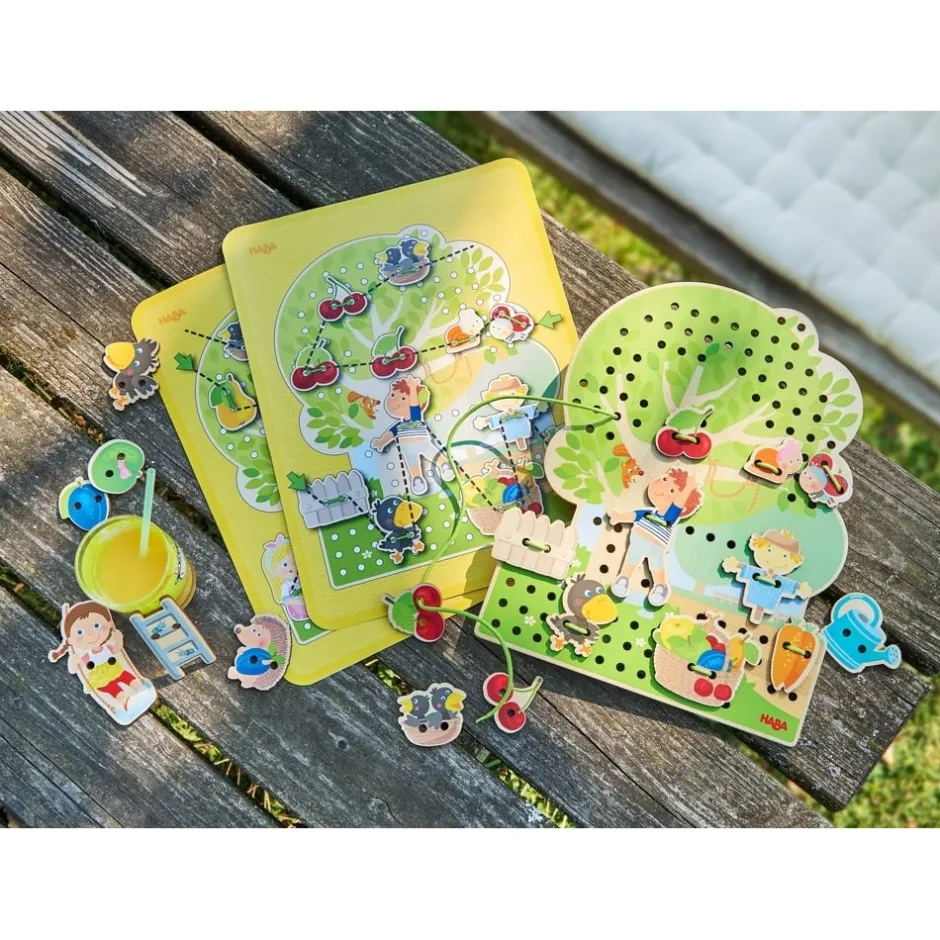 Ici le laçage est un jeu d’enfants ! Les petits vont adorer jouer à ce jeu de laçage : les plaquettes peuvent être lacées sur l’arbre fruitier selon les modèles, leurs envies. Petit à petit, une jolie scène voit le jour.