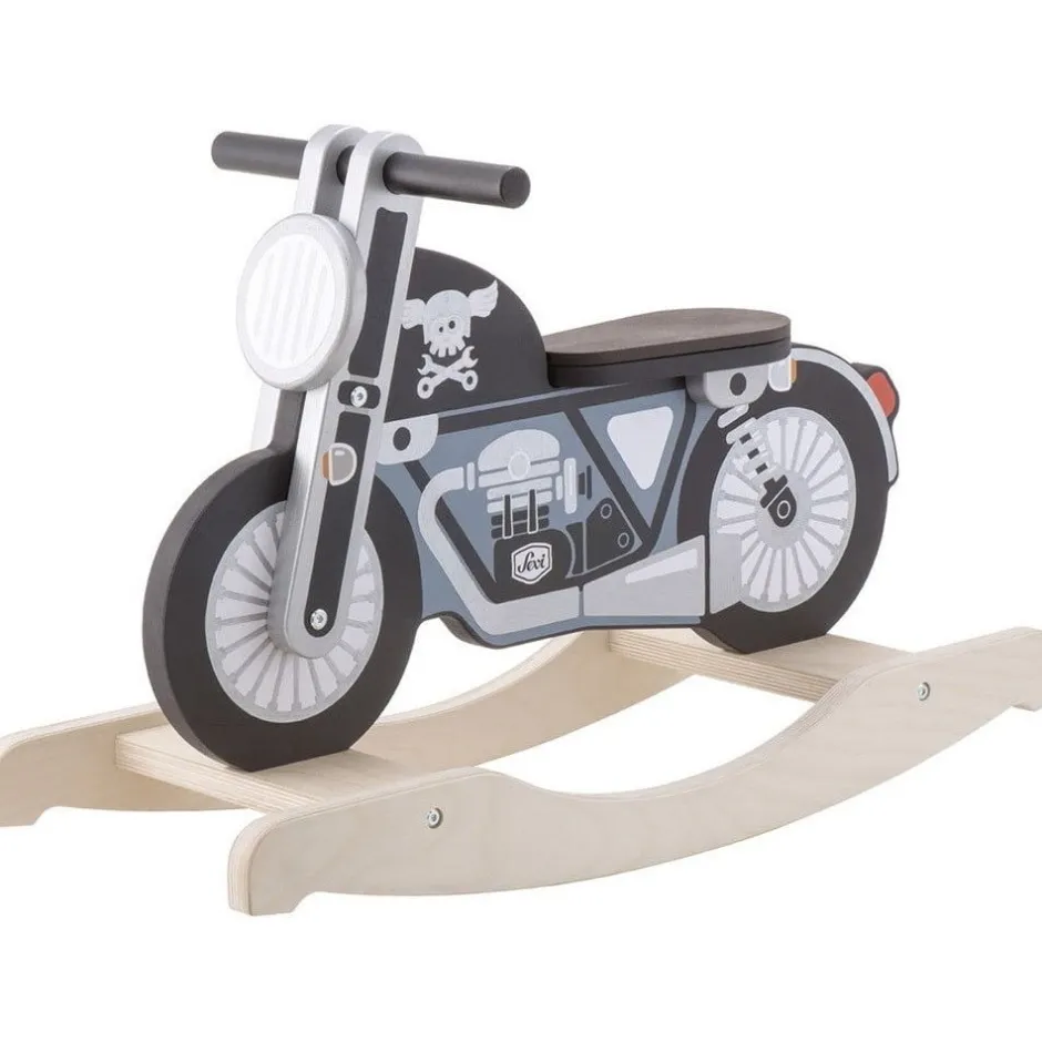 Mettez votre casque, enfourchez votre bolide et faites chauffer le moteur ! Cette magnifique moto à bascule en bois permettra à votre bébé de découvrir la sensation apaisante de se balancer. Au design réaliste, elle séduira à coup sûr votre enfant. Le mouvement de va-et-vient de la moto à bascule sera source d’amusement et d’émotions pour votre petit. Cette bécane originale, de couleur douce et au look vintage, accompagnera votre enfant dans son développement psychomoteur où il devra réaliser des mouvements de va et vient avec son corps, reporter son poids de l’avant à l’arrière du jouet en bois tout en prenant appui sur les poignées de la moto à bascule. Grâce à ce jeu d’éveil en bois, votre enfant travaillera son équilibre et la coordination de ses membres. Car le but c’est quand même de rester sur la moto ! Au volant de sa monture, il pourra s’imaginer une grande épopée et vivre de belles aventures. Il s’immergera dans un univers de biker prenant la route 66 seul, en quête de liberté. Vers quel voyage l’emmènera cette moto à bascule ? Seule son imagination nous le dira.