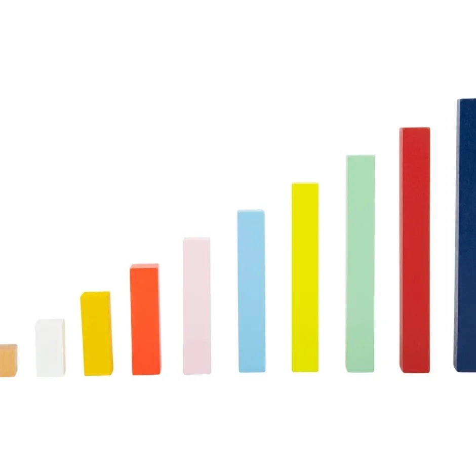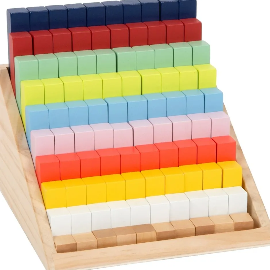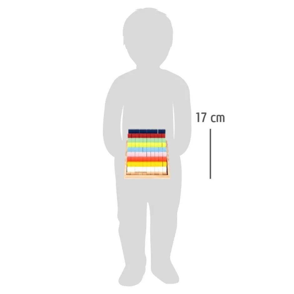 Les bâtonnets de calcul font travailler l’imagination et la pensée logique, tout en permettant de comprendre les tailles et les couleurs. Pour compter, comparer et trier, ainsi que pour effectuer des additions, des soustractions, des divisions et des multiplications, ils sont également le compagnon idéal des petits et grands maîtres de l’arithmétique ! Dans la boîte en bois assortie, toutes les règles à calcul peuvent être triées et rangées.