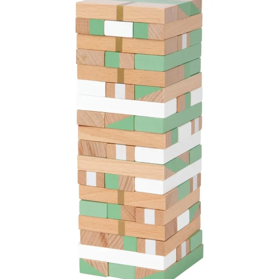 Ce jeu d’adresse classique est visuellement le « gagnant » de tout assortiment de jeux, même pour les adultes ! La tour bancale offre un divertissement pour toute la famille : que ce soit seul, avec les enfants ou dans une ronde conviviale entre amis ! Le look moderne avec des accents dorés, la couleur pastel tendance en combinaison avec du blanc et beaucoup de bois naturel vous séduira à coup sûr ! Grâce à la solide boîte à enfiler, le placement de la tour est également un jeu d’enfant ! La boîte peut également servir de rangement permanent pour les 54 pièces de jeu en bois massif de haute qualité, de conception différente.