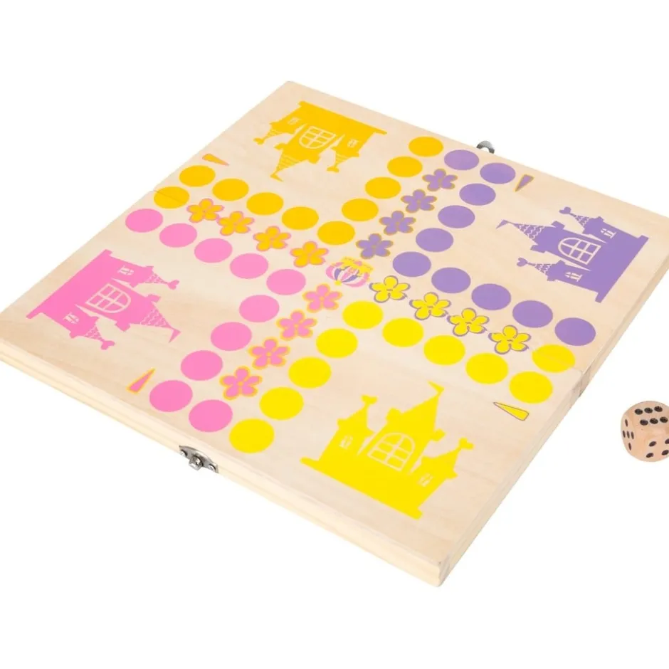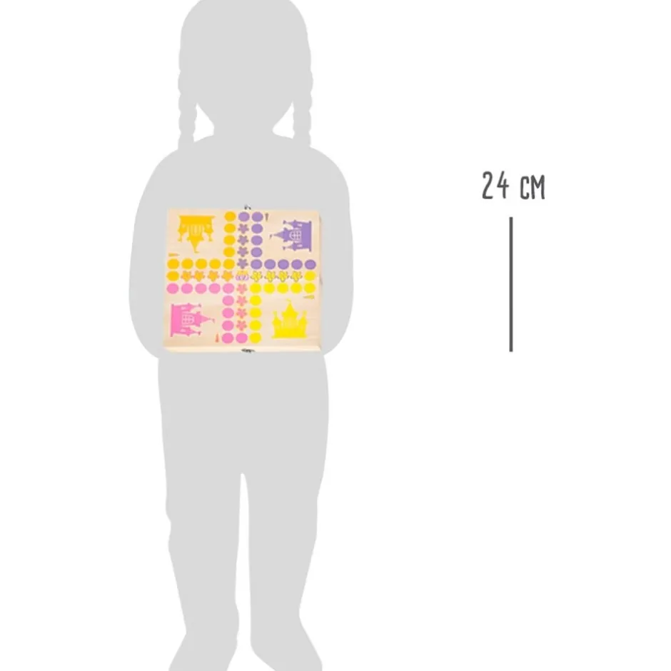 Le but du jeu est de faire le tour complet du plateau, dans le sens des aiguilles d’une montre, avec ses jolies princesses et de monter sur les fleurs de la couleur correspondante jusqu’à arriver au centre du plateau. La règle du jeu est simple, chaque joueur doit lancer le dé et faire un 6 pour sortir une princesse de son royaume. Une fois arrivée dans la partie, chaque princesse se déplace du résultat du lancer de dé jusqu’à terminer son tour du plateau et arriver devant sa colonne de fleur. Pour pouvoir monter sur une fleur, il doit lancer le dé et obtenir respectivement un 1, puis un 2, puis un 3, puis un 4 et enfin un 6 pour aller au centre. La partie ne s’achève que lorsqu’une princesse atteint le centre et se voit couronnée reine. Ce jeu de plateau passionnant permet aux enfants d’apprendre les chiffres et les couleurs ainsi qu’à jouer en groupe entre amis ou en famille.