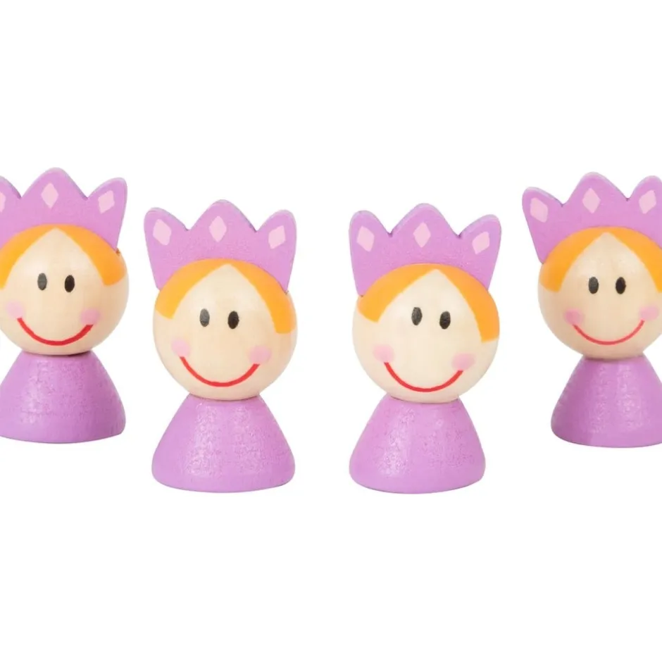 - 16 pions princesse (4 roses, 4 oranges, 4 jaunes et 4 violets) ;