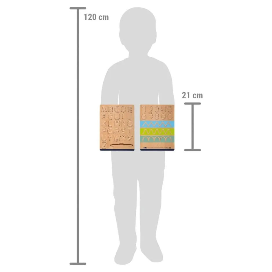Apprendre à écrire de manière ludique ! Ce kit d’ardoises pour apprendre à écrire stable et de haute qualité en bois certifié FSC ouvre aux enfants en maternelle et en primaire les portes vers le monde fascinant de l’écriture et de l’apprentissage. Le kit d’ardoises comprend deux tableaux en bois pratiques avec deux côtés, chacun offrant la base pour une expérience d’apprentissage variée et interactive. Deux crayons en bois de la taille d’un crayon sont fournis pour une sensation d’écriture authentique dans les petites mains d’enfant. Avec ce kit d’apprentissage, les enfants peuvent non seulement apprendre toutes les majuscules et minuscules de l’alphabet, mais aussi reproduire les chiffres de 0 à 9 dans l’ordre correct des traits. Il comprend également une multitude d’exercices d’élan qui entraînent et développent la motricité fine de la main qui écrit avec des arrondis, des arabesques et des lignes droites. Pratique et bien pensé : le kit d’ardoises d’apprentissage de l’écriture dispose d’un rangement intégré pour que les crayons soient toujours à portée de main et que rien ne se perde.