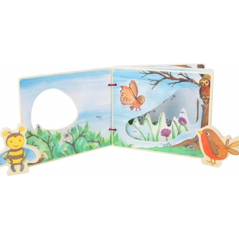 Avec ce livre en bois pour bébé, les enfants partiront dans un beau voyage à la découverte du monde aérien de manière amusante, tout en stimulant son éveil et son imagination. L’abeille et le rouge-gorge peuvent effectuer de grandes envolées à travers les ouvertures des pages en bois colorées. Nos deux petits amis ailés peuvent être attachés au dos du livre en bois avec des morceaux de Velcro pour un transport facilité.