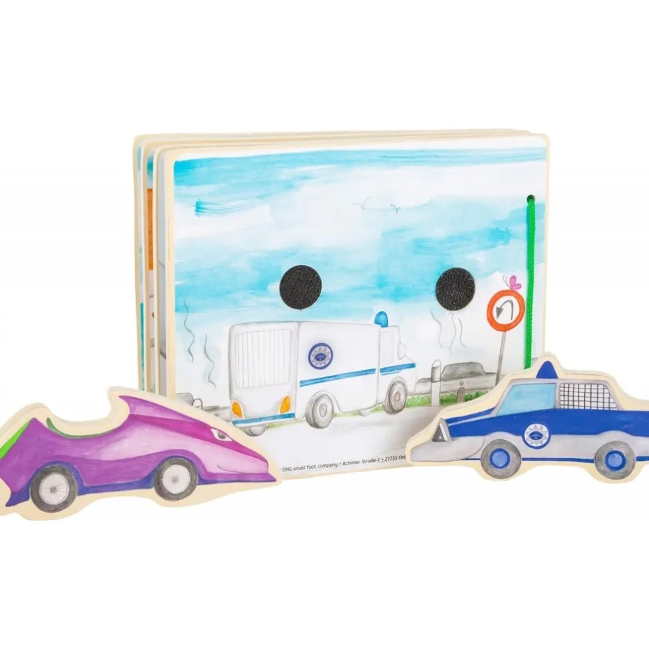 Avec ce livre en bois pour bébé, les enfants partiront dans un voyage à la découverte des missions de nos forces de l’ordre de manière amusante. À la fin de leur course poursuite, les figurines de voitures peuvent être simplement attachées au dos du livre avec l’attache de type Velcro pour un rangement et un transport facilité.