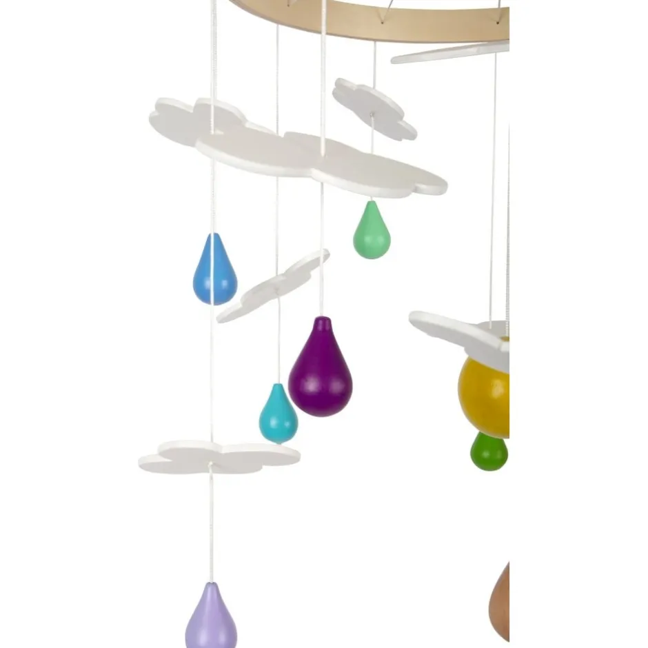 Des gouttes de pluie aux couleurs de l’arc-en-ciel ! Fixé au-dessus du lit d’enfant ou de la commode à langer, ce mobile moderne en bois éveille la curiosité des petits observateurs, car de leur point de vue, les éléments tridimensionnels du mobile sont particulièrement bien visibles ! Les couleurs naturelles de l’arc-en-ciel se complètent harmonieusement avec le blanc discret et les éléments en bois naturel. Rêves célestes garantis !