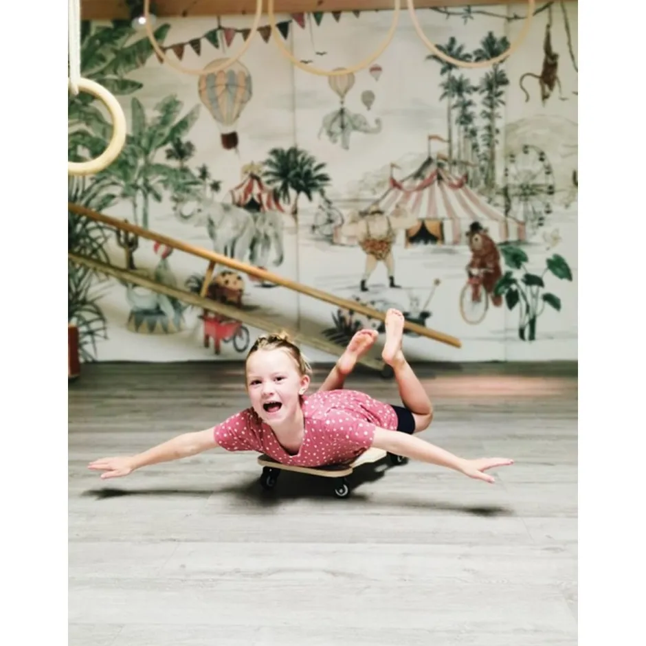 Cette planche à roulettes en bois crée beaucoup d’amusement en bougeant, et offre un large éventail d’idées de jeu. Que ce soit en position assise, à genoux ou couchée, la planche à roulettes robuste et anti-basculement permet de s’amuser et d’entraîner la force physique et l’équilibre. Les poulies qui peuvent également être tournées rapidement et facilement à l’horizontale, permettent des changements de direction rapides. Les indentations latérales des poignées offrent une sécurité supplémentaire ! Avec des rouleaux caoutchoutés pour un déplacement silencieux et protecteur du sol.