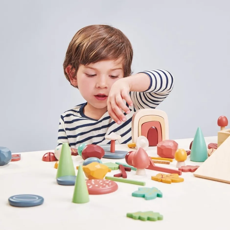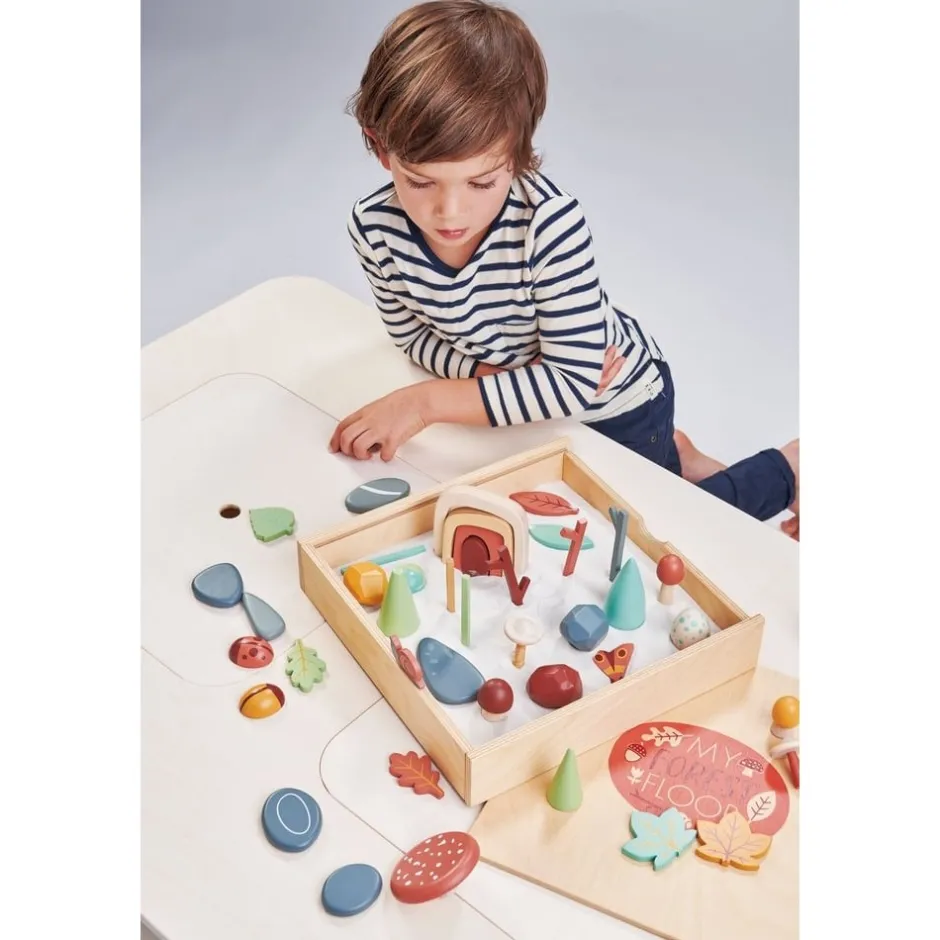 Un grand plateau de jeu façon boîte à outil pour que votre enfant puisse tirer, empiler et ranger ses trésors de la forêt. Le couvercle est amovible et peut être retourné et utilisé comme un tableau noir sur lequel l’enfant peut dessiner son décor forestier. Les compartiments en bois peuvent également être retirés et la boîte remplie de sable peut permettre de créer une scène de jeu magique dans la forêt.
