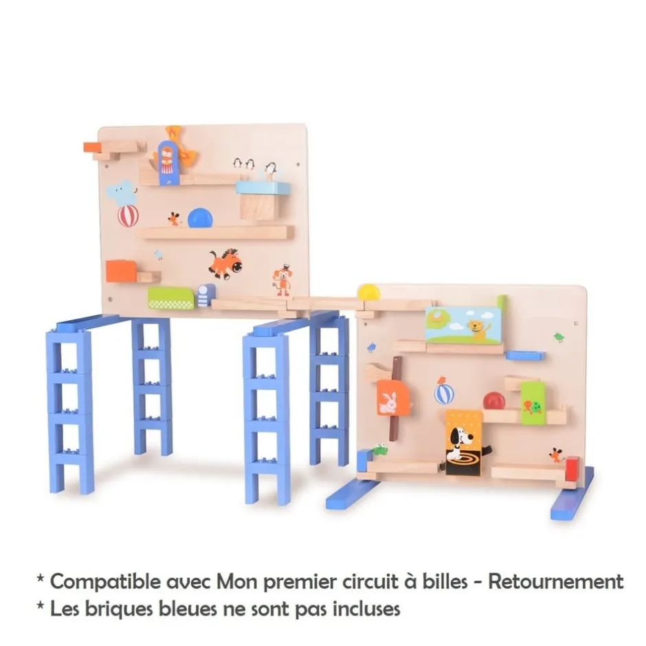 Ce circuit à billes est compatible avec Mon premier circuit à billes – Retournement. Ils sont vendus dans le pack Mon premier circuit à billes – Rotation et Retournement.