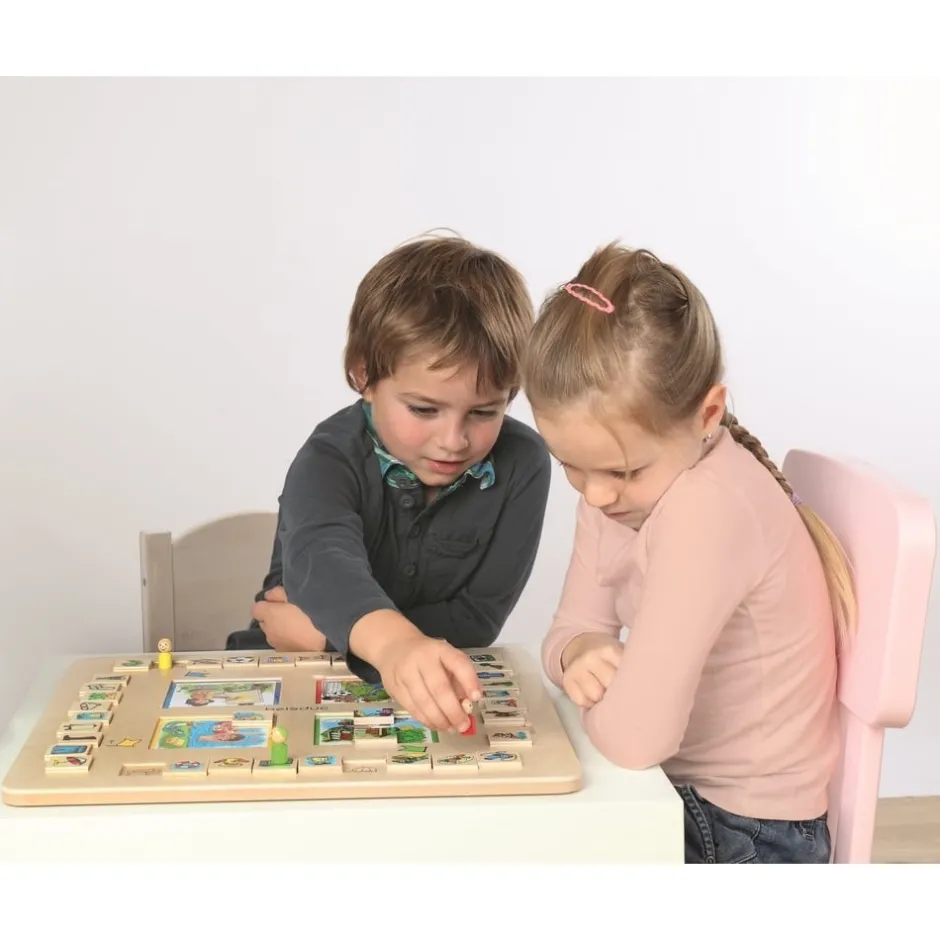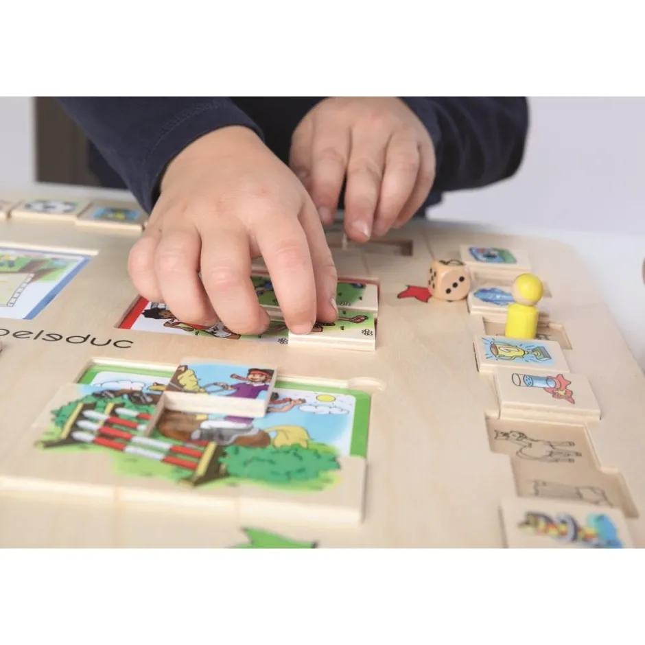 Le but du jeu est de retrouver quels objets sont associés à quelle activité loisir et d’être le premier à reconstituer le puzzle de sa carte loisir pour gagner la partie. Les joueurs avancent leurs pions à tour de rôle en lançant le dé. Quand il arrive sur un objet, le joueur vérifie tout de suite s‘il peut être associé à sa carte activité. Si c’est le cas, il prend la pièce, la retourne pour découvrir une partie de sa carte d’activité qui sert à compléter son puzzle. Il devra retrouver toutes les pièces qui composent son image loisir et les positionner correctement pièce par pièce pour reproduire à l’identique l’illustration de son activité loisir. Ce jeu de société en bois comprend :