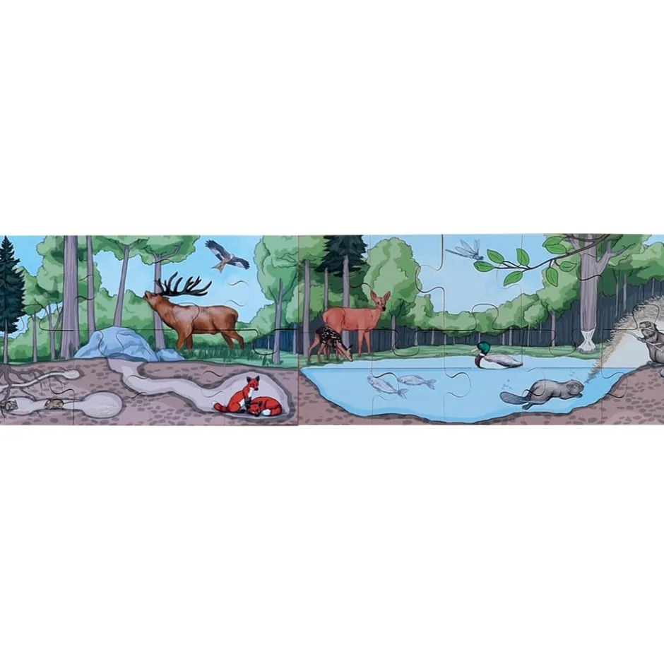 Un paysage forestier passionnant qui vous invite à l’explorer de plus près ! Regardez de près quels animaux peuvent être admirés au-dessus et sous le sol ! Ce puzzle en bois pour enfants se compose de 40 pièces.