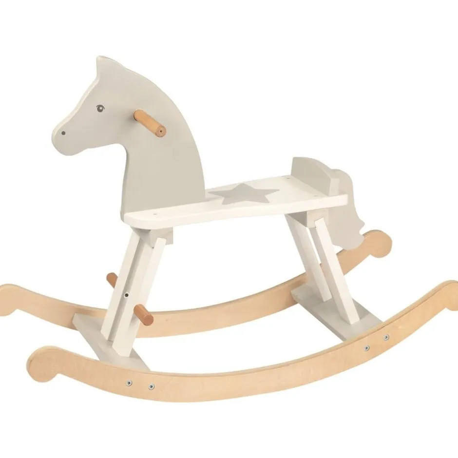 En bois naturel, il possède des poignées et des repose-pieds qui assurent un maintien solide qui peut encore être renforcé et sécurisé par l’ajout d’un dossier et de supports latéraux. Votre enfant développe son sens de l’équilibre et sa motricité globale ainsi que son imagination pour inventer et mettre en scène des histoires, et endosser différents rôles grâce au jeu libre. Son développement psychomoteur est favorisé par le balancement du cheval qui permet la détente et l’apaisement. Le mouvement de va-et-vient améliore la stabilité, la mobilité et l’équilibre ainsi que le renforcement musculaire et la coordination des mouvements (bras, jambes, pieds, mains, muscles centraux). C’est une activité qui incite au calme et à l’autonomie. Par ailleurs, monter et descendre seul, se balancer en mettant en mouvement son corps, prendre appui avec les pieds et se tenir fermement avec les mains stimule la motricité fine, l’autosatisfaction et la confiance en soi. Votre enfant acquiert ainsi un sens du rythme par l’exploration de mouvements lents et rapides.