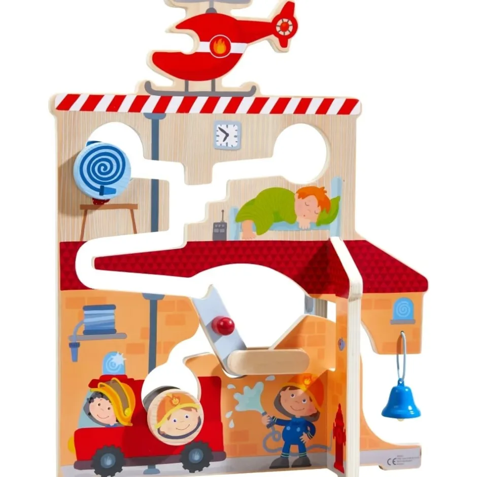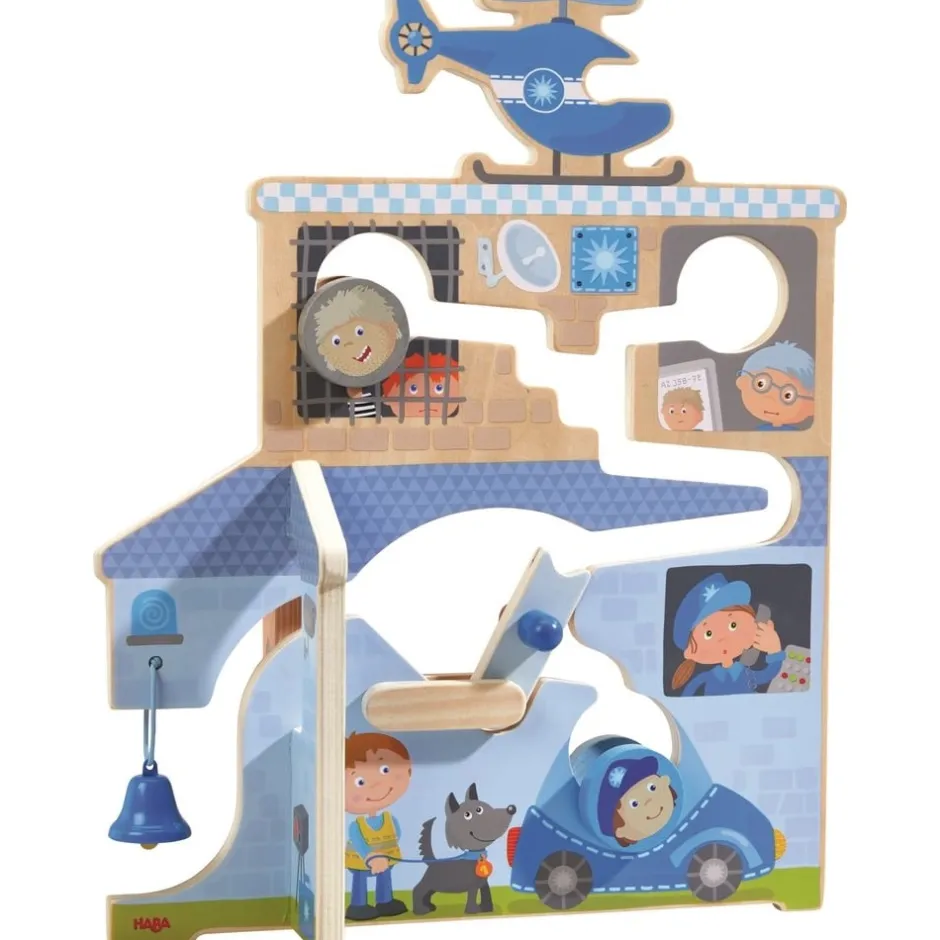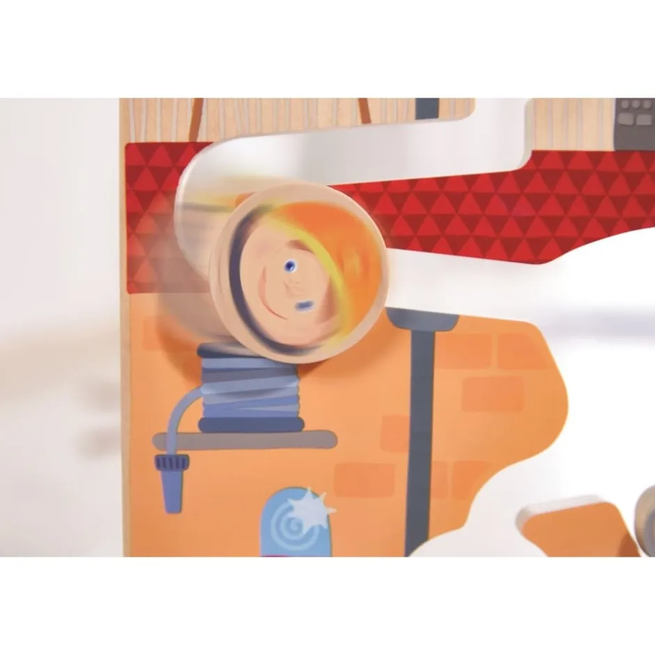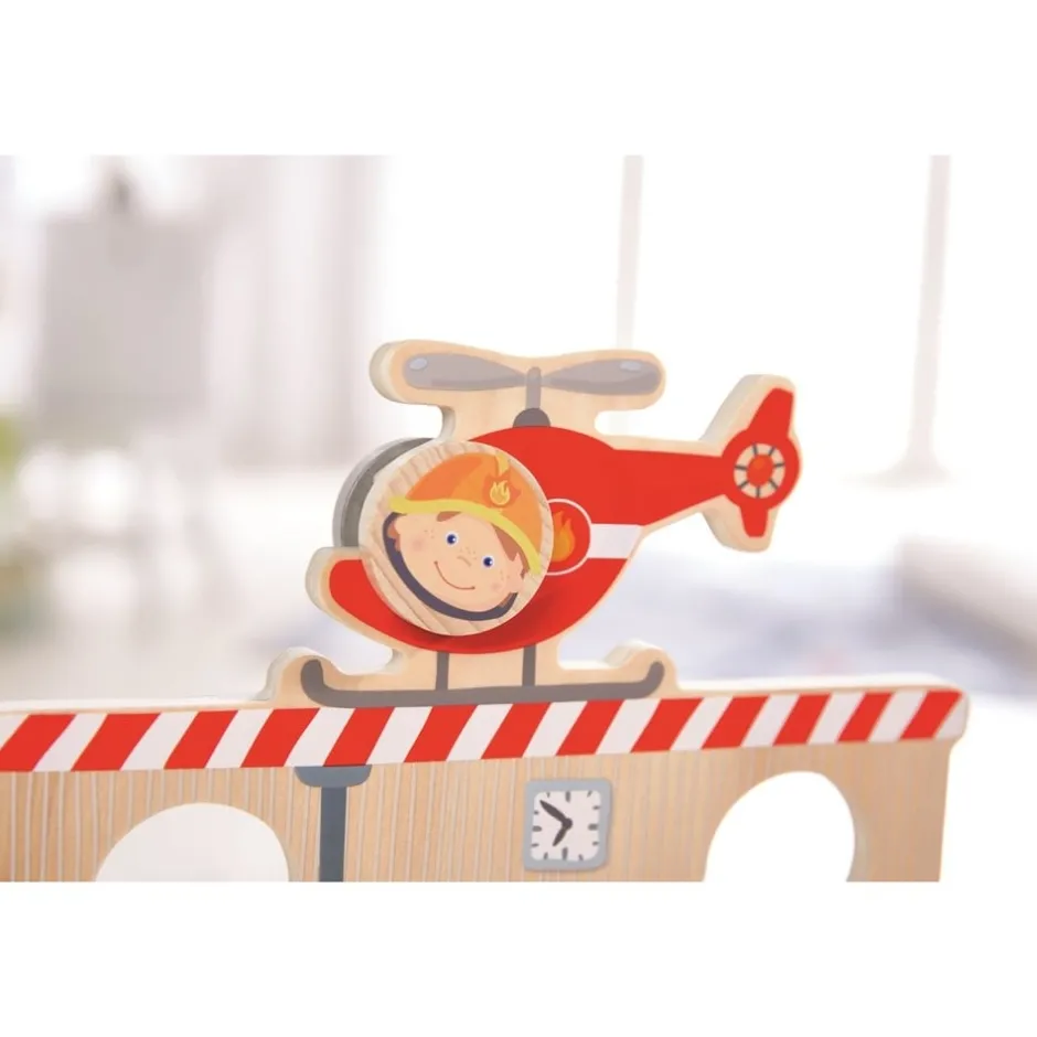 Grâce à ses deux faces différentes, l’enfant pourra choisir de partir en intervention avec les pompiers ou les policiers. Dans tous les cas, l’hélicoptère est prêt à faire décoller les rouleaux. En leur donnant un peu d’élan, ils glissent le long des évidements creusés dans le décor. Cela crée de magnifiques effets sonores, et un super effet de levier avec les petits sauveteurs.