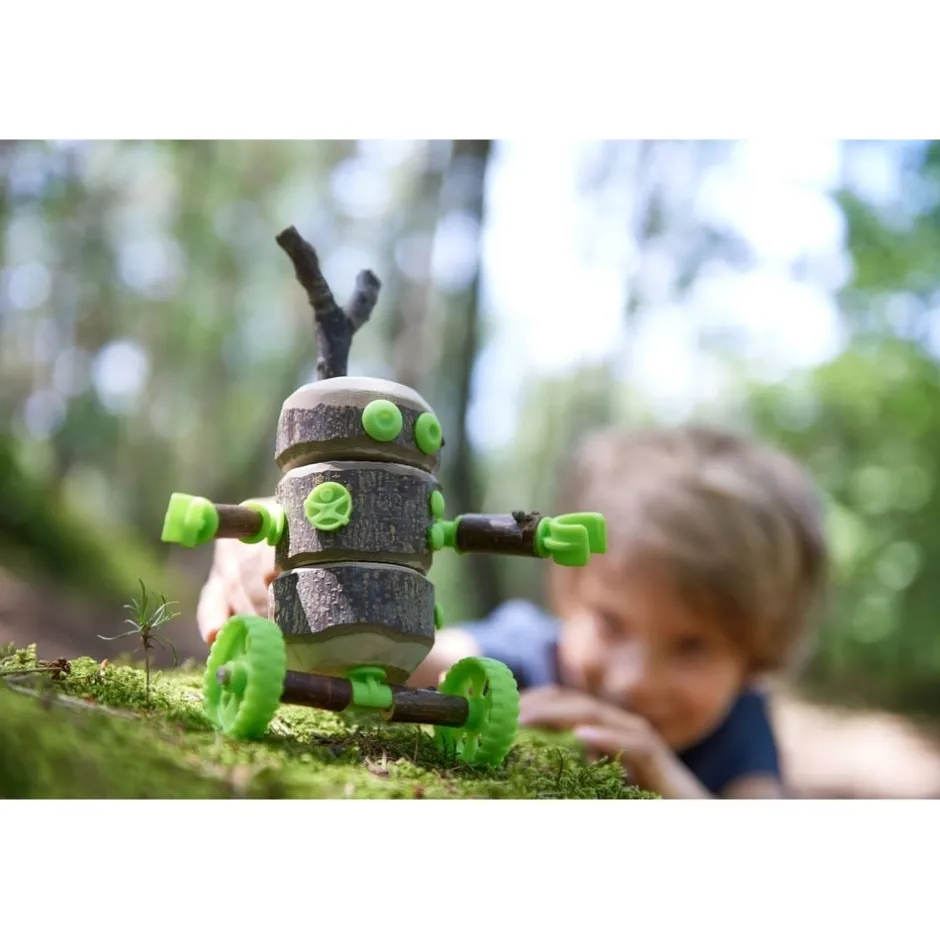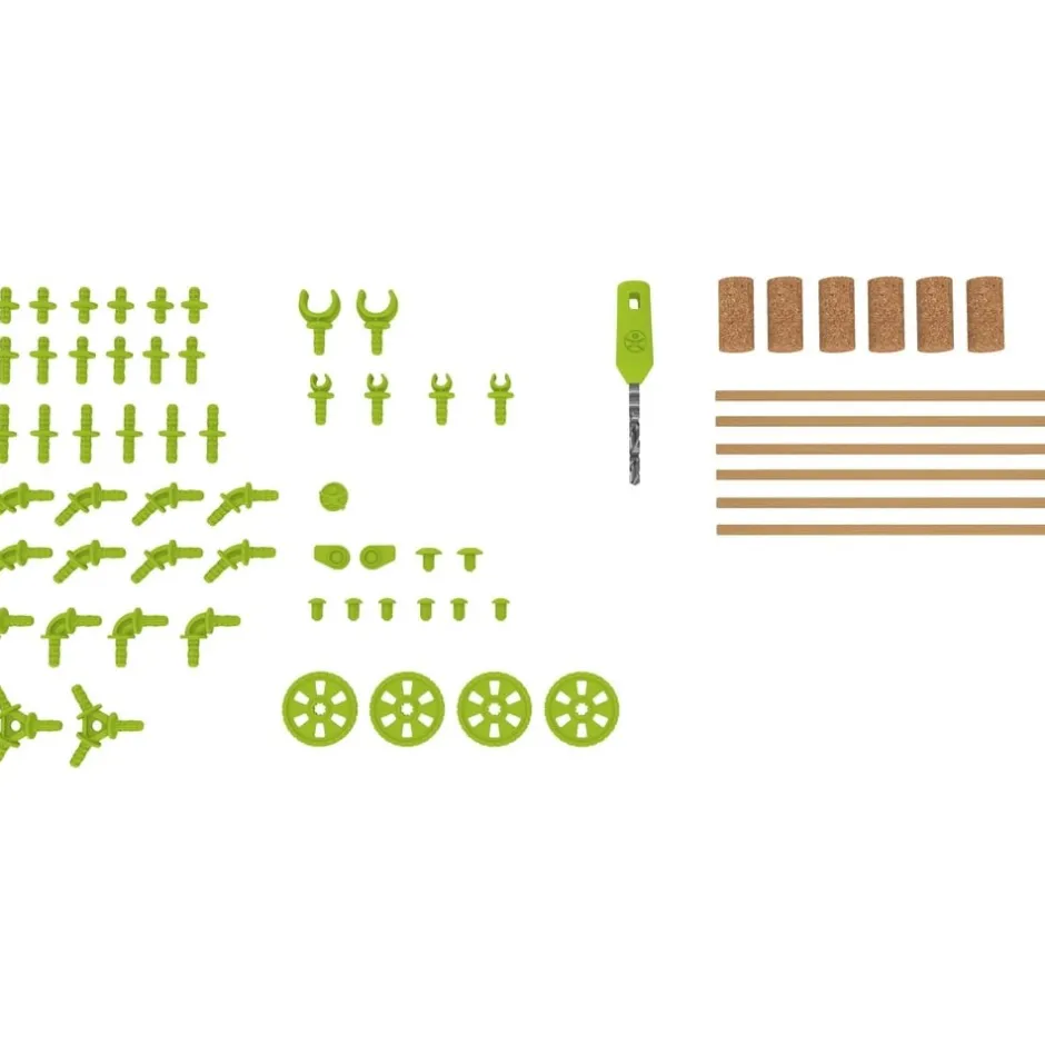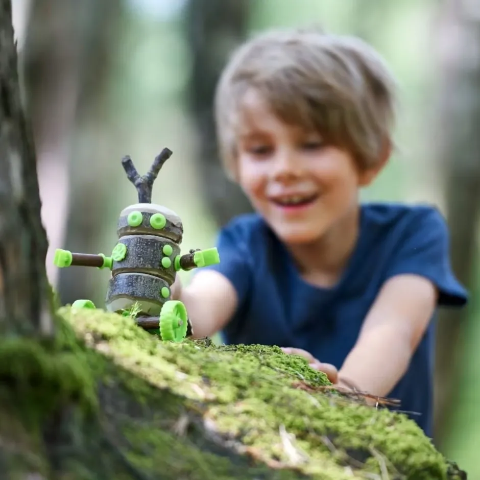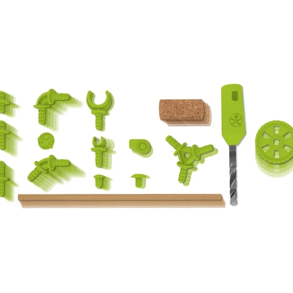 Assembler, scier, percer, emboîter : les connecteurs Terra Kids vous permettront de créer de nombreux véhicules passionnants. Le principe est simple et génial : ramasser du bois dans la nature, l’apporter à la maison pour le travailler, y percer des trous, insérer des connecteurs et le relier à une autre pièce en bois, et les véhicules prennent vie. La notice contient de nombreuses suggestions pour d’autres constructions. Les branches ne sont pas fournies.
