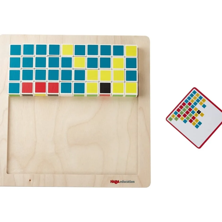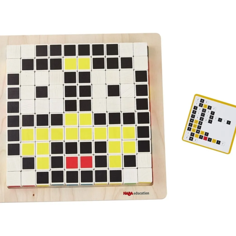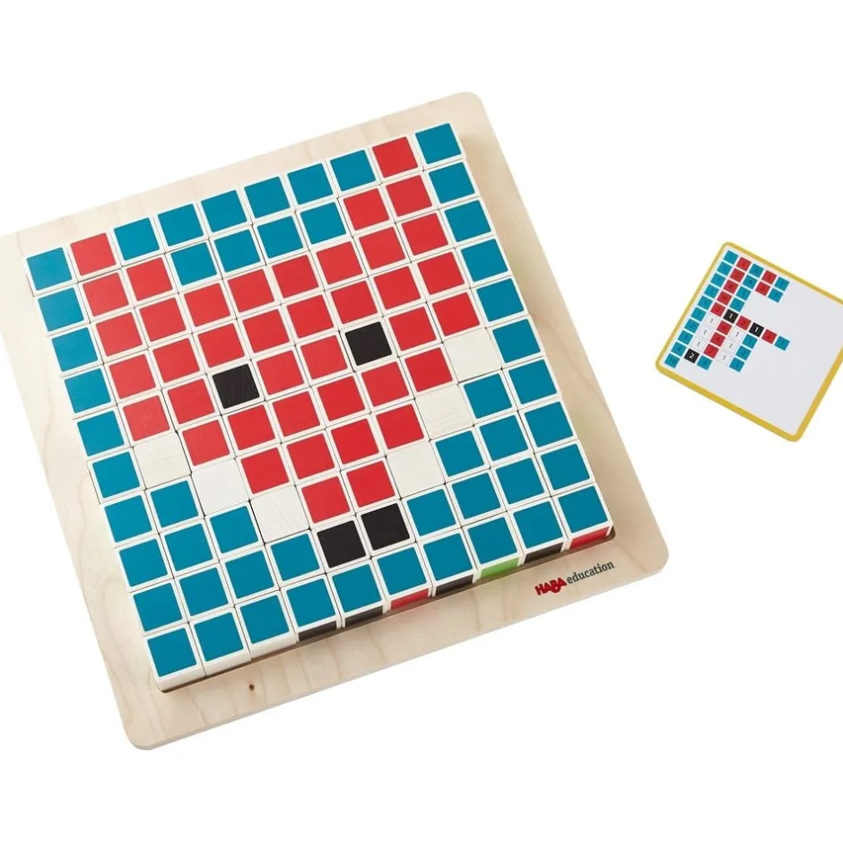 Ce magnifique jeu éducatif en bois permettra à votre enfant de décrypter des codes mystérieux et de comprendre comment un ordinateur convertit les instructions en images couleur à l’écran. Pour déchiffrer les différents codes, il devra décoder ligne par ligne et placer les pixels aux bons endroits sur le plateau. Les trois niveaux de difficulté, matérialisés par un bord coloré sur les cartes de code (vert pour facile, jaune pour intermédiaire et rouge pour difficile), font réfléchir les débutants en programmation et les vrais experts en pixels ! Une fois le concept compris et assimilé, votre enfant pourra devenir lui-même programmeur et développer ses propres codes ! Ce jeu favorise également la motricité fine, la concentration et l’imagination.
