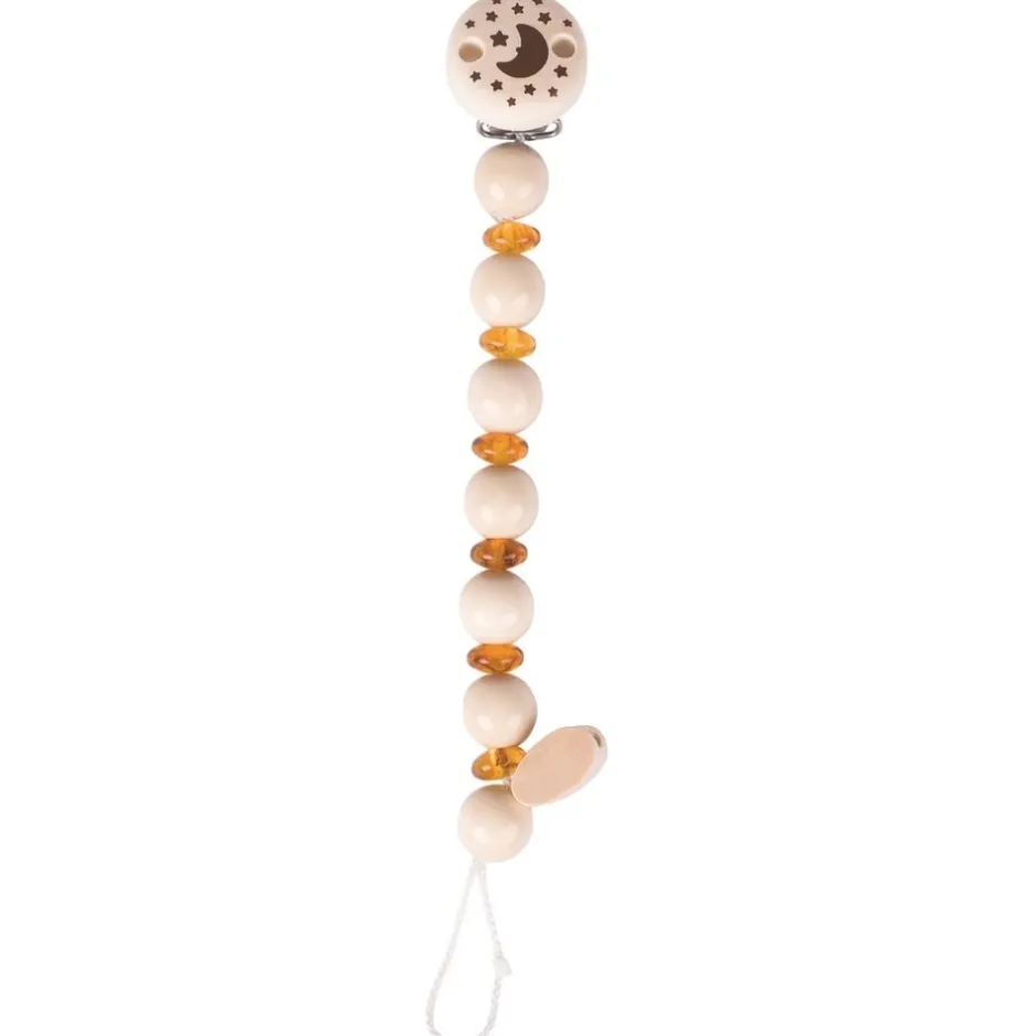 Découvrez notre élégant accroche tétine composé de petites perles de bois et de pierres d’ambre véritable de la gamme protection naturelle. Cette gamme allie la pureté du bois et les vertus de la pierre d’ambre. L’ambre est une pierre connue pour ses bienfaits, ses propriétés physiques et chimiques ainsi que ses nombreuses vertus. Il lui serait attribué des qualités thérapeutiques telles que de contribuer au renfort des défenses immunitaires, de soulager les bébés des douleurs liées aux poussées dentaires, d’activer la circulation du sang et d’aider à combattre la fatigue, le stress et l’anxiété. Et on sait tous à quel point la perte de la tétine est stressante, aussi bien pour les parents que pour bébé, n’est-ce pas ? Tout dans cet accessoire pour bébé en bois est fait pour aider votre enfant. Cet accroche tétine en bois éveillera son sens du toucher, du maniement et son sens visuel associés aux bienfaits de l’ambre. Grâce à l’attache à clipper vous pourrez fixer cet accroche sucette en bois aux vêtements, body, manteau, poussette de votre bébé pour qu’il l’ait en sécurité auprès de lui en toutes circonstances.