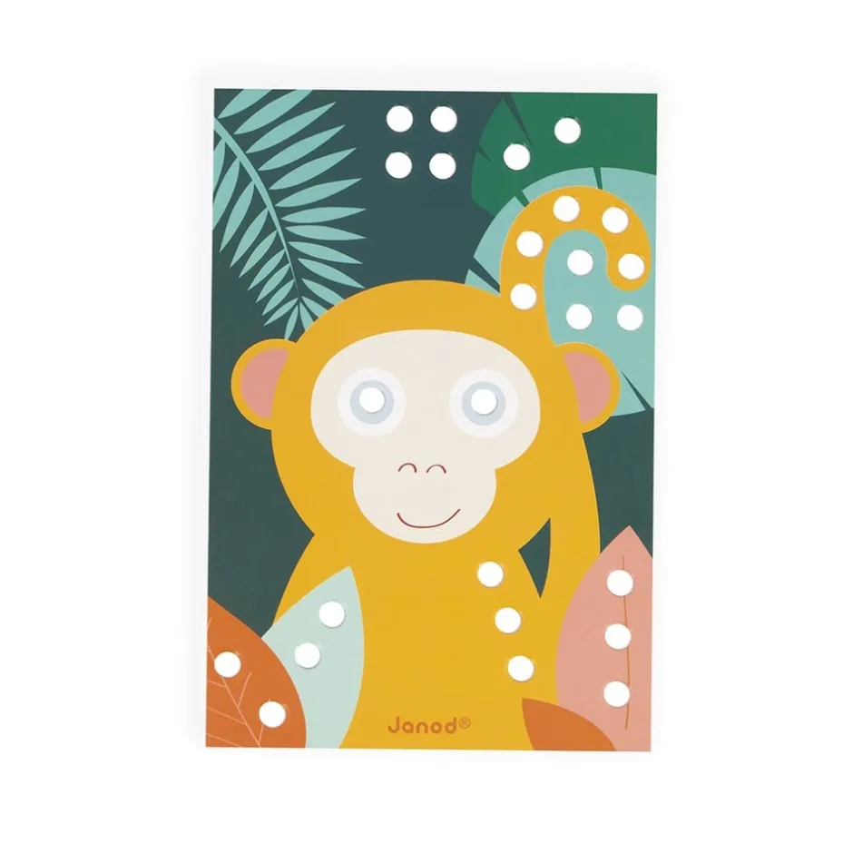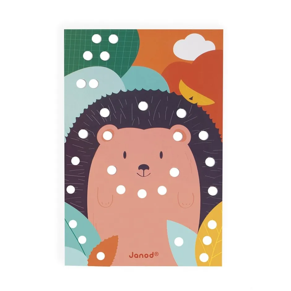 Des cartes aux couleurs douces et actuelles, où les petits pourront replacer les pièces de bois au bon endroit et ainsi donner vie aux adorables animaux présents sur les cartes ! Renard, hérisson, singe… Ils attendent tous d’être décorés ! Ce jeu est idéal pour un temps calme avec les enfants. Les pièces ont été pensées pour les petites mains (1,5 cm de diamètre), pour une préhension facile ! Malin : la boîte sert de support pour les cartes, il n’y a plus qu’à poser et à décorer.