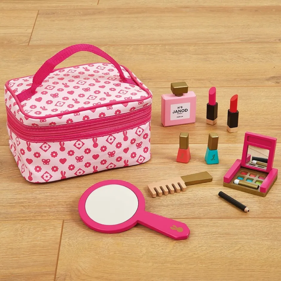 Découvrez le Vanity P’tite miss de Janod, toute la panoplie nécessaire pour une mise en beauté avec 9 accessoires en bois à partir de 3 ans.