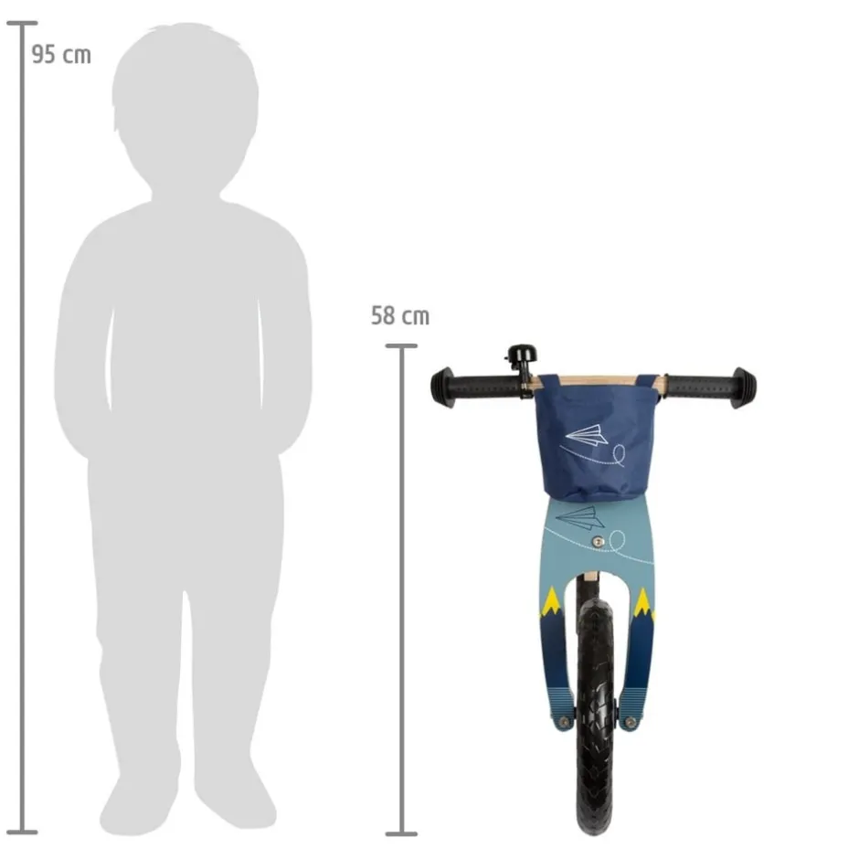 Vite comme un avion en papier ou un petit oiseau ! Avec son design rectiligne, sa couleur douce, cette draisienne en bois ravira les petits explorateurs. Grâce à la selle réglable en hauteur à 3 positions, la draisienne grandit sans effort avec l’enfant. Le sac amovible au guidon offre de la place pour les jouets et les provisions. Point fort : quand la nouvelle génération a besoin d’une pause sur la route, la draisienne légère avec sangle de transport peut être épaulée sans effort ! Le guidon avec limitation de l’angle de braquage assure une sécurité supplémentaire. Sonnette, poignées en caoutchouc, pneus souples EVA indestructibles et siège souple assurent le plaisir de conduite !
