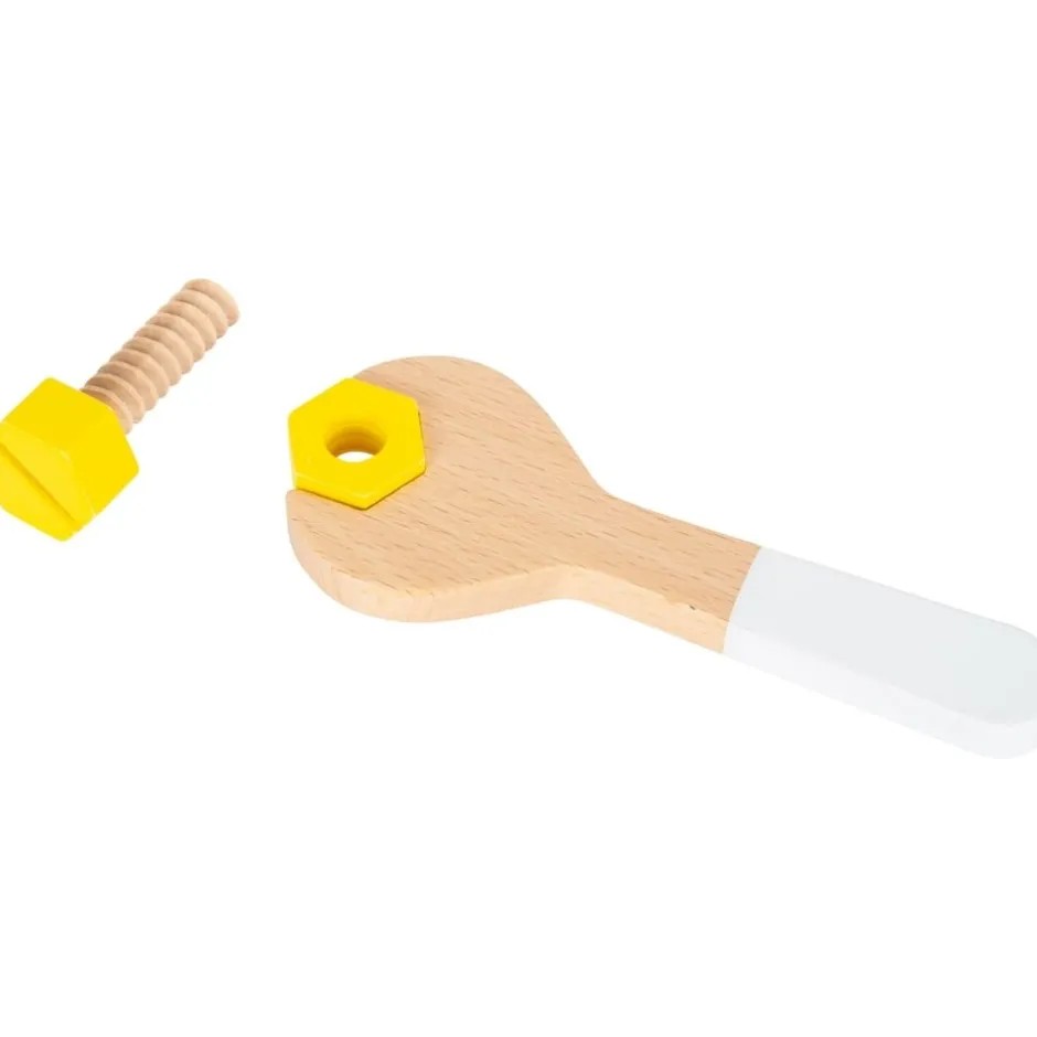 Cette très jolie boite à outils en bois aux tons pastel d’inspiration scandinave, au design simple, détaillé et élégant, ravira tous les petits bricoleurs en herbe.