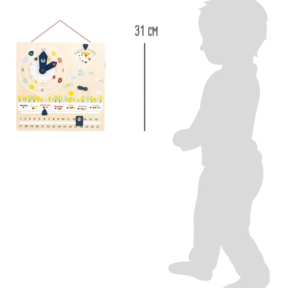 Grâce à ce calendrier et horloge éducatifs en bois, vous pourrez par exemple :