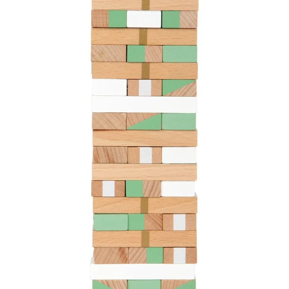 Ce jeu d’adresse classique est visuellement le « gagnant » de tout assortiment de jeux, même pour les adultes ! La tour bancale offre un divertissement pour toute la famille : que ce soit seul, avec les enfants ou dans une ronde conviviale entre amis ! Le look moderne avec des accents dorés, la couleur pastel tendance en combinaison avec du blanc et beaucoup de bois naturel vous séduira à coup sûr ! Grâce à la solide boîte à enfiler, le placement de la tour est également un jeu d’enfant ! La boîte peut également servir de rangement permanent pour les 54 pièces de jeu en bois massif de haute qualité, de conception différente.
