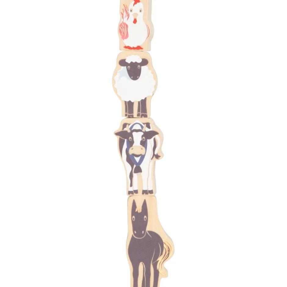 Les animaux peuvent être empilés les uns sur les autres grâce aux aimants présents sur toutes les pièces du jeu. Chacun des animaux correspond à une couleur et à une empreinte particulière. Chaque animal peut donc être affecté à son terrain de départ. En plus du plaisir de jouer, les enfants apprennent de cette manière, tout à fait par hasard, quel animal a quelle empreinte.