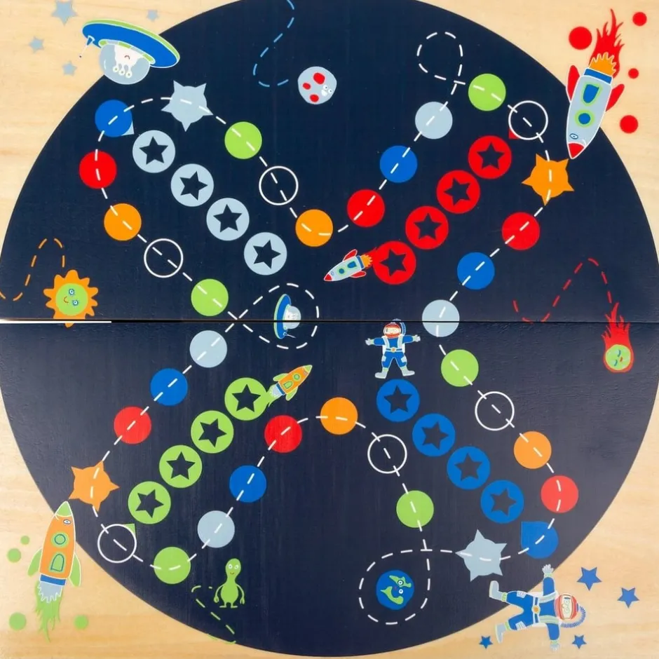 Les chevaliers de l’espace auront le choix entre l’utilisation d’un dé à chiffres classique ou un dé à couleurs plus adapté aux plus petits. Participez à la guerre des étoiles où extraterrestres, petits astronautes et fusées s’affrontent pour atteindre leur étoile ultime. La partie ne s’achève que lorsqu’un chevalier atteint son étoile. Ce jeu de plateau passionnant (24 x 24 x 1,5 cm) permet aux enfants d’apprendre les chiffres et les couleurs ainsi qu’à jouer en groupe entre amis ou en famille.