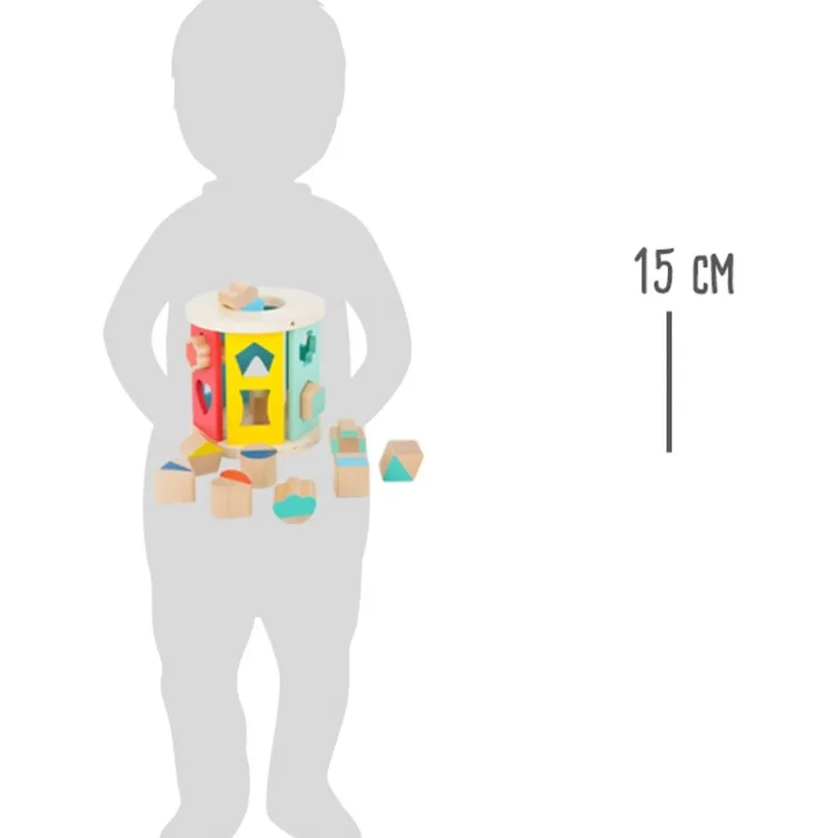 Un jeu de manipulation en bois idéal pour distraire, amuser, stimuler votre petit ange et encourager sa reconnaissance des formes géométriques et des couleurs. Dans les 6 faces colorées de cette belle boite à formes rouleau en bois, votre enfant devra découvrir dans quelle fente chacune des 12 formes géométriques doit être insérée. Il devra manipuler les différentes pièces pour réussir à les présenter de la bonne manière, pour réussir à les insérer dans l’emplacement correspondant. Pour faciliter un peu cet exercice, les formes et les couleurs le guideront. Le cube va dans le carré bleu clair, le cylindre dans le cercle bleu foncé, le prisme dans le triangle bleu foncé… Chaque forme insérée est stockée dans le ventre du rouleau qui commence à être bruyant quand on l’agite. À tout moment, votre enfant pourra récupérer facilement le contenu de la boite à formes en bois en insérant sa main par la base fermée par un élastique. Enfin, la forme du rouleau permet au jouet de rouler, ce qui stimulera les quatre pattes de votre bébé.