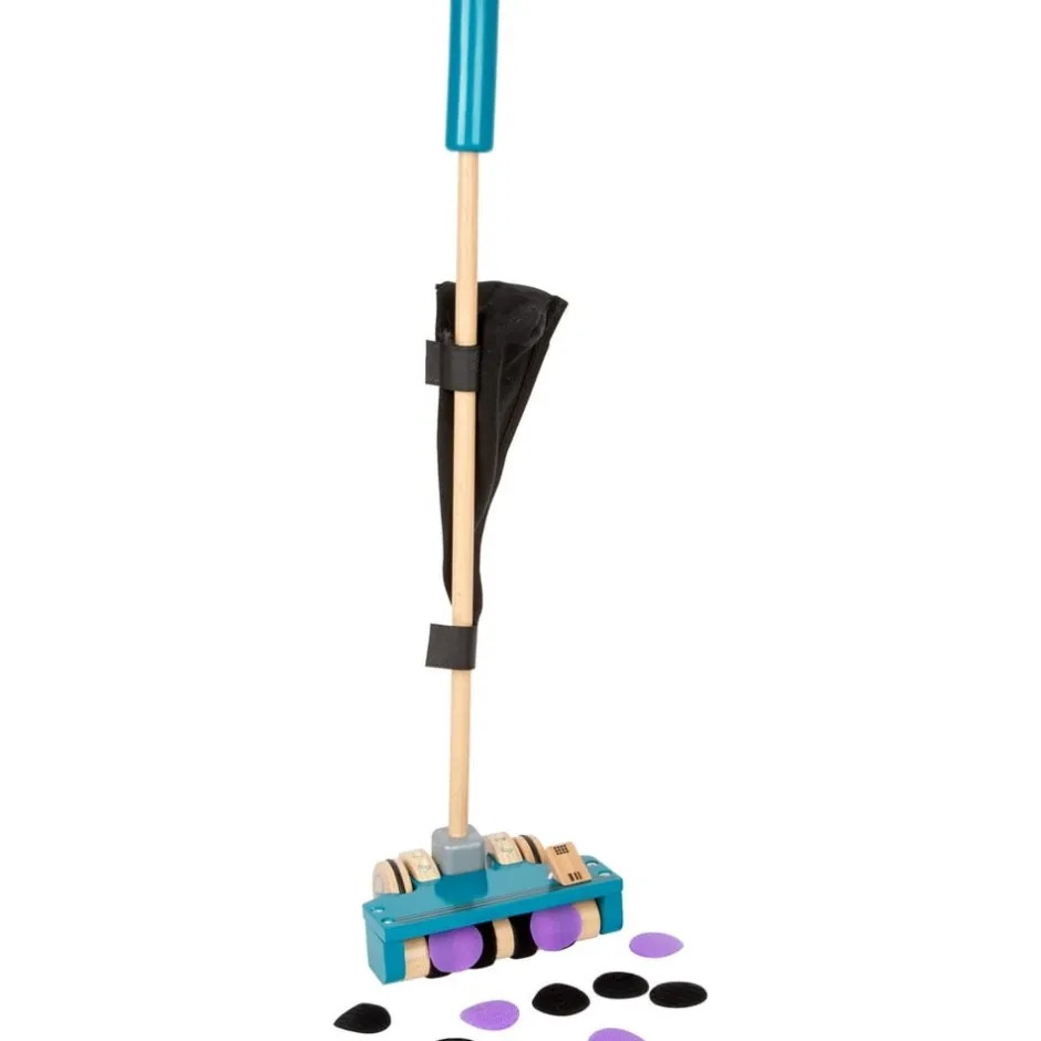 Votre enfant prendra plaisir à faire le ménage grâce à cet aspirateur en bois réaliste. Cette tâche de la vie quotidienne qui, pour la plupart des parents s’assimile à une corvée journalière, deviendra pour votre plus grand plaisir un véritable jeu ludique et agréable pour votre bébé de 18 mois jusqu’à ses 8 ans. Cet aspirateur en bois, jouet très réaliste, est composé d’une brosse d’entrée d’air munie de bandes velcro pour « aspirer » la poussière et les saletés, matérialisées par des petits disques en velcro (10 : 5 noirs et 5 violets), qui vont venir s’agripper à la brosse de l’aspirateur ainsi que d’un sac pour vider la poussière (amovible et refermable, permettant de ranger les disques velcro). Les roues caoutchoutées, situées à l’arrière de l’entrée de l’aspirateur, assureront un maniement facile et silencieux de ce jouet en bois à pousser, pour que votre enfant puisse le manipuler aisément pour jouer à vous imiter. Il pourra également s’en servir comme point d’appui et travailler son équilibre et motricité. Ce jouet en bois stimulera l’imagination de votre bébé, lui permettra de jouer un rôle et reproduire par mimétisme les gestes quotidiens qu’il vous voit faire et refaire, et le motivera à parfaire son apprentissage de la marche.