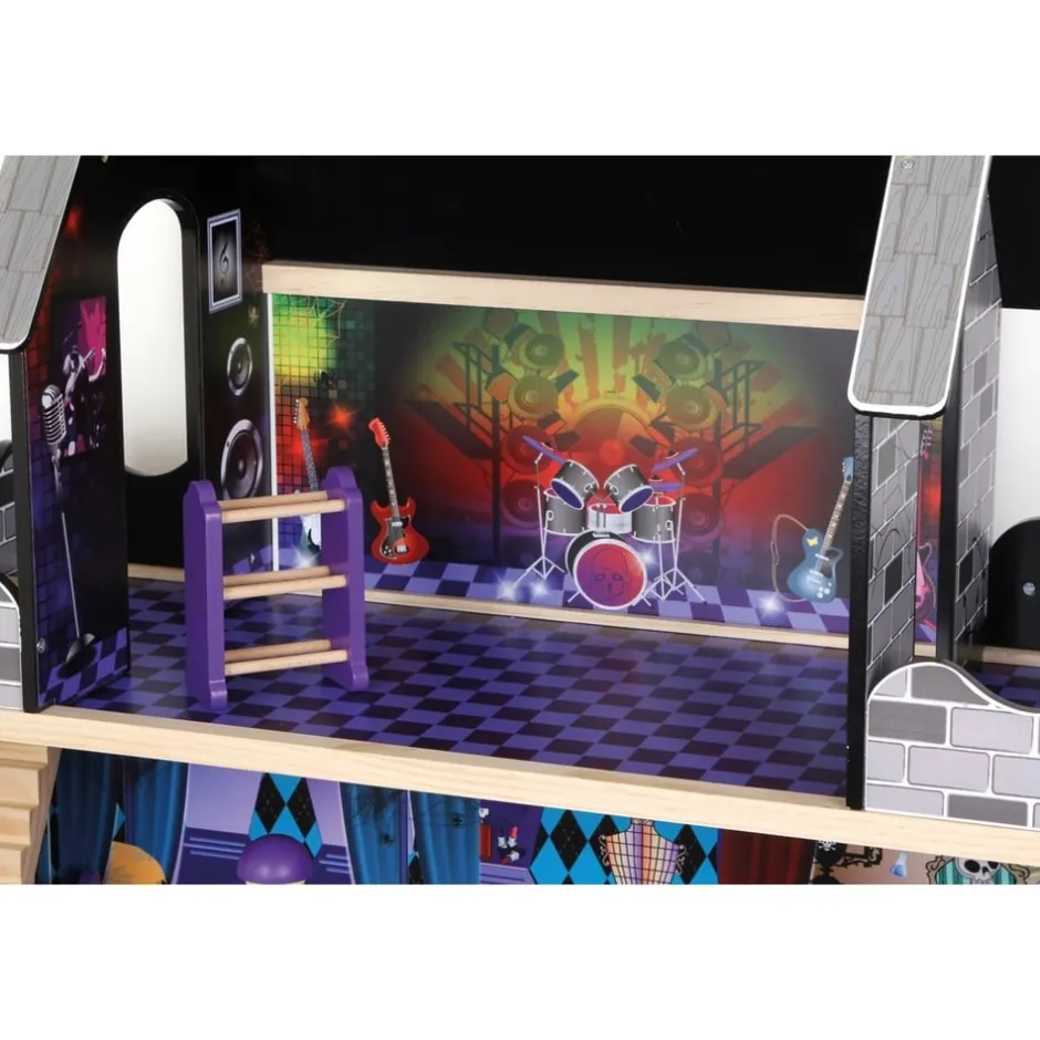 Maison de poupée effroyablement belle aux motifs colorés sur les murs pour donner une bonne chair de poule au joueur ! Sur 3 étages, les petites poupées s’installeront dans leur nouveau domicile ! 8 meubles en bois verni sont inclus, mais il reste encore de la place pour ajouter d’autres meubles.