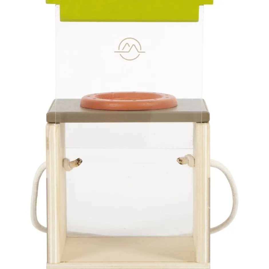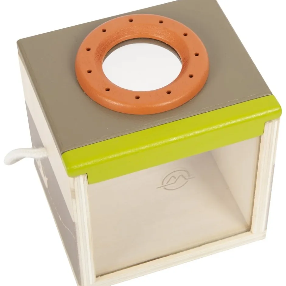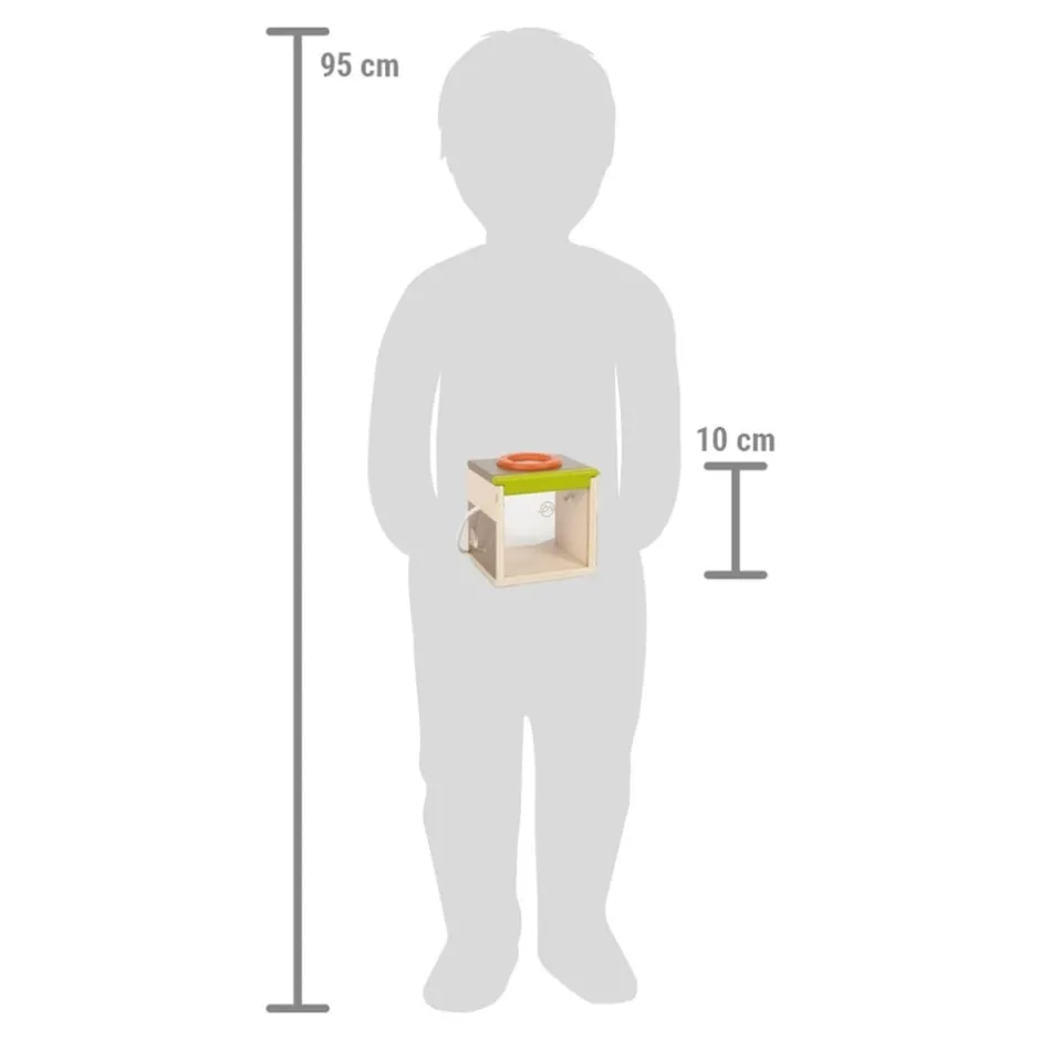 Observer de près les coléoptères, chenilles et autres ! Les enfants adorent découvrir la nature qui les entoure. La boîte d’observation d’insectes est le jouet de découverte idéal pour attraper en douceur toutes sortes d’insectes et les examiner de plus près. Cet observatoire à insectes est fabriqué en bois solide certifié 100 % FSC et offre, grâce à ses deux côtés en verre acrylique et à la loupe sur le dessus, une bonne vue de trois côtés sur les « petites bestioles » attrapées. L’intérieur de la boîte d’observation peut accueillir des branches et des feuilles entières, ce qui permet d’observer les insectes capturés en douceur et sans stress. La boîte d’observation à insectes dispose de trous d’aération, d’une cordelette pour la porter d’une seule main et d’une vitre en acrylique mobile à pousser vers le haut.